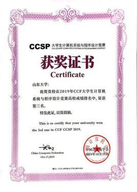 bv1946伟德官网CCF CCSP获奖证书
