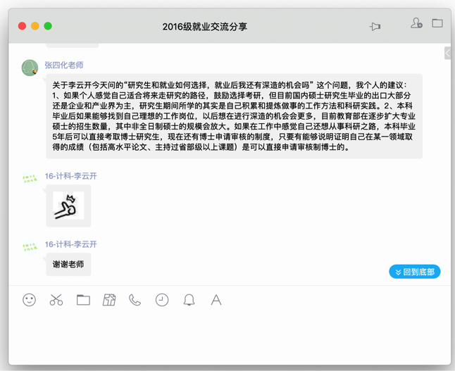 分享会后,很多同学对自己所关注的问题向已签约的同学和张四化副书记做了提问,签约同学均结合自己的经验给出了积极的互动回应,张四化副书记作为毕业班辅导员针对提问同学的问题也做了详细的回复和解答。