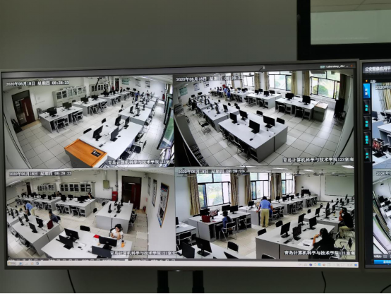 本场次开考的两门课程《计算机网络》、《新型网络技术与实践》,均以在线开卷考试方式进行,主考教师通过雨课堂向2018级261名考生发放试卷、监考教师通过腾讯会议平台对考试过程进行全程监控。为确保考试公平可控同时又满足疫情防控要求,本场次考试共设置三个监考室,15位监考老师同时在线监考,考试全程录屏。整场考试从调试主副设备、清点人数、检查证件、发放试卷到在线提交,各环节进行流畅,整场考试工作平稳有序。为保证考试顺利进行,青岛校区本科教育办公室、后勤管理处、信息化工作办公室提前对电力和网络保障进行了协调。