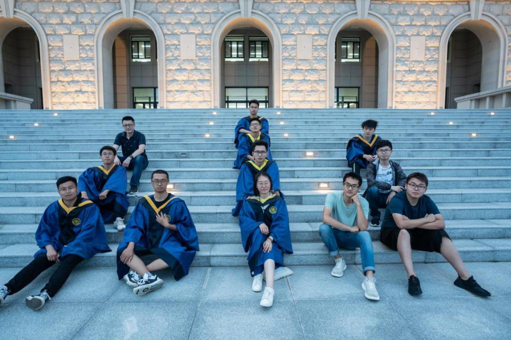 在学位授予环节中,屠长河教授为每一位毕业生拨正流苏、颁发学位证书,并合影留念。