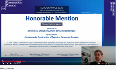 EG简介:EG是计算机图形学领域国际顶级会议,会议内容涵盖网格几何处理、表面重建、真实感绘制以及计算机动画与模拟等图形学技术,与ACM SIGGRAPH有密切合作关系。Eurographics 2020组委会从参与会议报告共62篇论文中,评选4篇最佳论文提名角逐唯一最佳论文奖项。