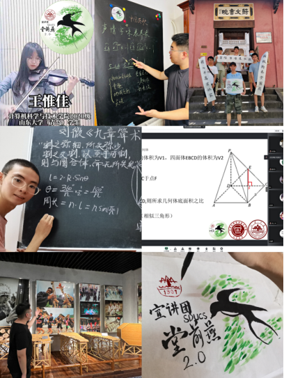 “堂前燕2.0”社会实践队秉持“线上+线下”原则,在各媒体平台开展大量线上活动。团队完成了各主题下云合奏、合唱视频的录制与投放并结合《民法典》录制系列微课,为后续宣讲活动提供素材;针对来自各高中、大学的学子,开展了“中国古代数学传统文化”线上公益讲座,在普及传统文化的同时分享大量数学“干货”,并在后续有更多相关线上宣讲的活动安排。这些活动皆受到线上反馈的一致好评。