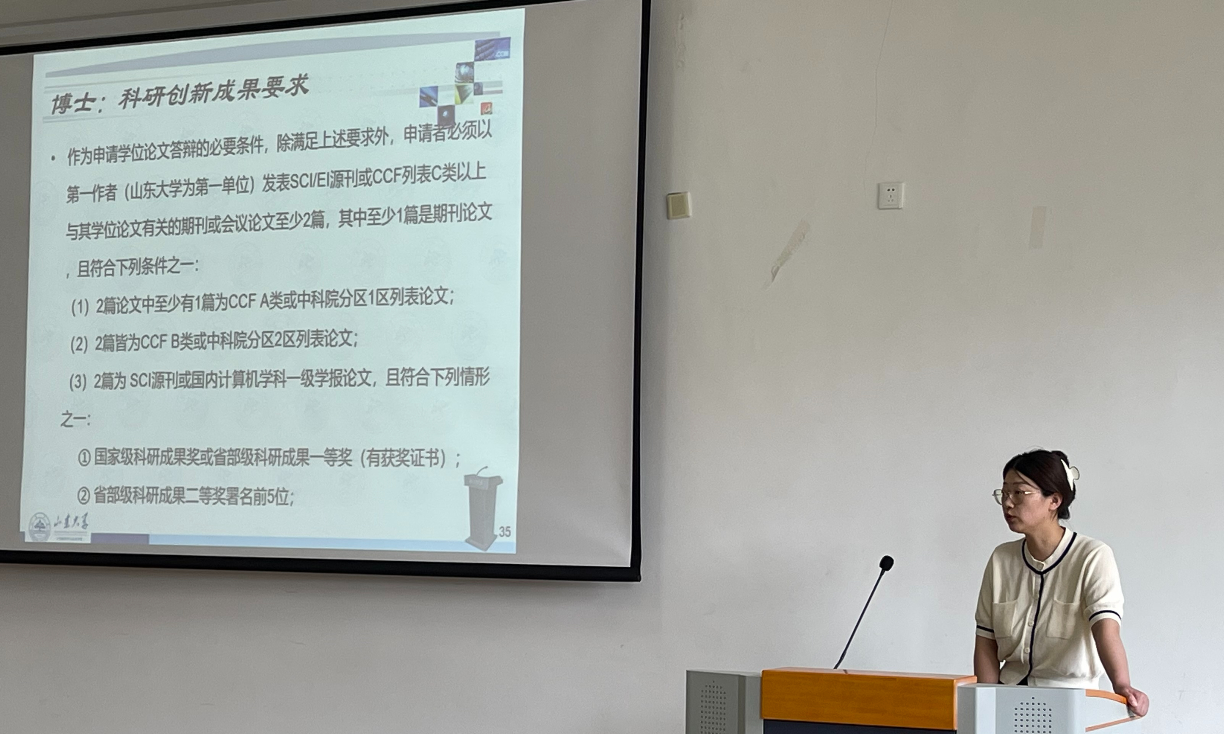院长第一课,名师风采展。学院举办了名师见面会,邀请各科研团队的名师代表向2023级研究生新生寄语新学期、提出新期望。随后,院长成秀珍为研究生新生们开讲第一课。成院长首先从人才队伍、人才培养、科技奖励、省部级平台建设等四个方面介绍了学院学科发展现状,从“不跟跑、不陪跑、创赛道、争领跑”的发展理念出发,深入介绍了学院“一个基础,三个融合”的学科基础研究情况、未来人工智能规划框架以及产研深度合作情况。同时,成院长还向新生们分享了做好科研的有力经验,以“复利思维”启发鼓励新生们“只要在做正确的事情,时间会给你一个奇迹”,并以“胸怀、眼界、格局、实力、担当、情怀”六个词寄语新生们,预祝他们学有所成。最后,成院长与在场同学进行了热情交流,同学们纷纷表示讲座内容详实、情真意切、发人深省,为今后的科研生活指明了方向。
