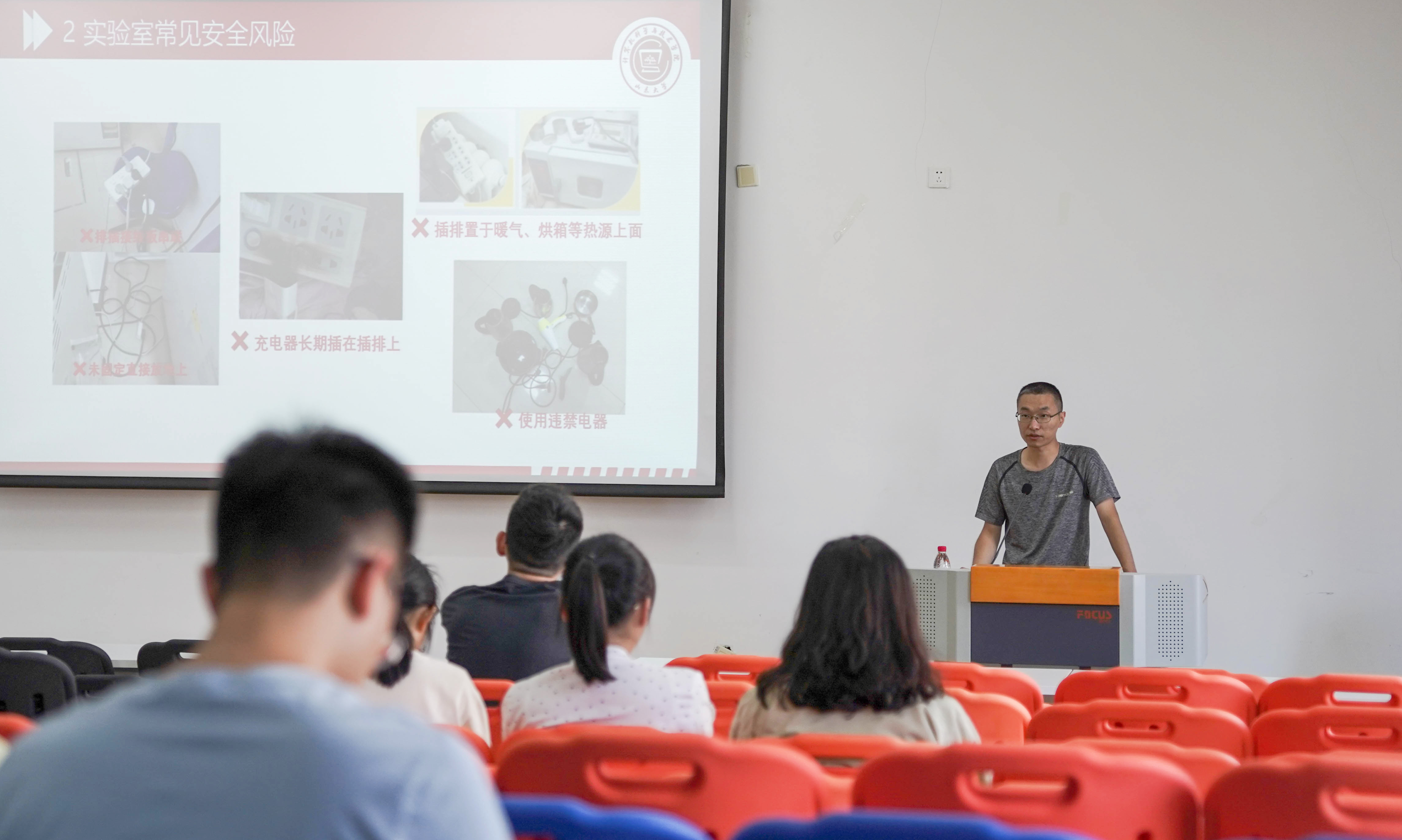 扎实守底线,切实防风险。校区心理健康教育中心于路心围绕环境适应、人际关系、学习适应和情绪管理等四方面新生入学可能会遇到的问题,为同学们提供了相应的疏解方法。校区党工委保卫部孙垚讲解了防溺水、防偷防盗、交通安全、消防安全、电动自行车安全、电信诈骗等安全知识,并现场演示了各种灭火器材的使用方法。学院实验室安全管理员马良讲解了实验室安全规则要求,强调要按照“6S”标准保证实验室安全。