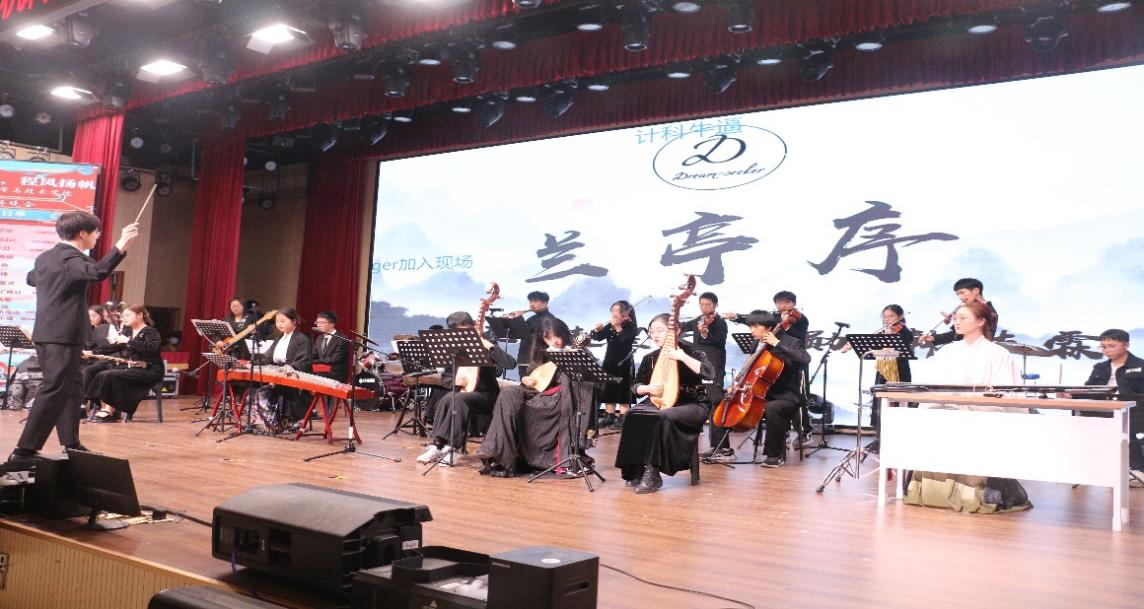 学院合唱团首秀《蝴蝶泉边》的演绎精彩动人,和谐悠扬的嗓音将情感表达得淋漓尽致,另一首合唱《大王叫我来巡山》则为观众呈现了一场愉悦的听觉和视觉盛宴。国学社团的《烛影摇红醉别欢》展现了中华传统文化的独特魅力,为观众带来了高雅的艺术享受。