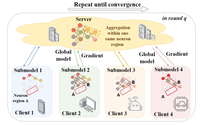 第三项成果为智能计算研究团队在数据挖掘领域顶级学术会议ACM SIGKDD 2023以长文形式发表的论文“Theoretical Convergence Guaranteed Resource-Adaptive Federated Learning with Mixed Heterogeneity”,该论文在分布式协作学习领域取得重大进展。文章第一作者为bv1946伟德官网硕士研究生王阳阳,指导教师包括bv1946伟德官网教授于东晓、助理教授张啸和乔治华盛顿大学教授兰添。参与该研究工作的还有bv1946伟德官网教授成秀珍、中国科学院教授陈华山、香港科技大学(广州)教授熊辉以及bv1946伟德官网硕士研究生李铭祎。