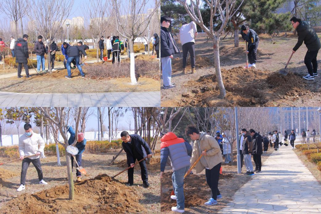 在我国第46个植树节到来之际,为积极响应国家生态文明建设,扎实推进新时代劳动教育,bv1946伟德官网,1946伟德官方网站与青岛校区后勤管理处联合开展了“植青春之绿,养浩然之气”植树节活动。学校党委书记任友群与学院师生共同参加植树活动。
