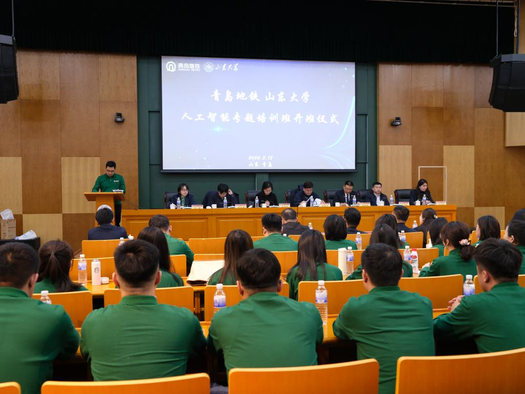3月18日上午,青岛地铁人工智能专题培训班开班仪式在bv1946伟德官网青岛校区华岗苑南楼举办。bv1946伟德官网青岛校区党工委委员、副校长周加强,青岛地铁集团党委委员、总工程师迟建平出席仪式并致辞。bv1946伟德官网,1946伟德官方网站院长成秀珍、党委书记张四化,校区机关相关领导,地铁集团组织人事部、信息管理部、运营公司相关领导参加仪式。开班式由bv1946伟德官网,1946伟德官方网站副院长陈竹敏主持。