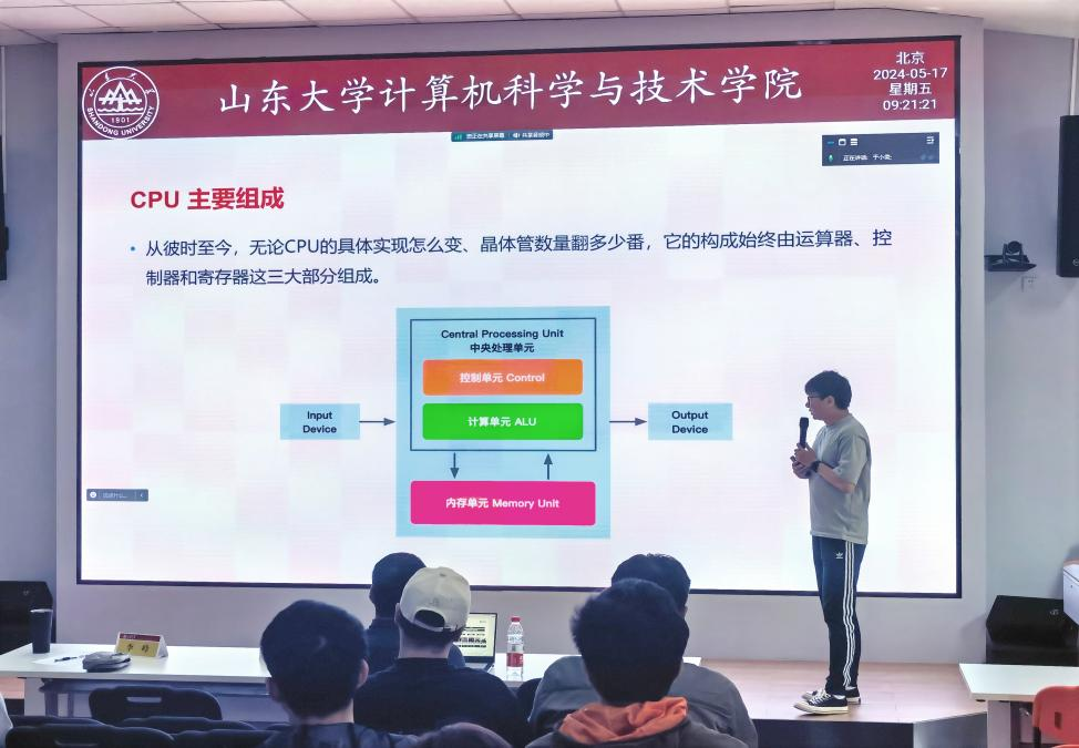 李峰教授作题为“异构智能算力”的报告,从AI计算体系及AI芯片基础两方面介绍了通用处理器CPU的发展历史、主要组成及应用场景,通过比较CPU、GPU及NPU深入探讨了超异构并行 CPU、GPU、NPU 并存的计算系统架构黄金十年。