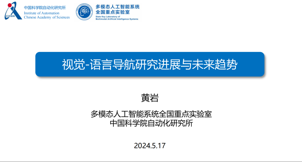 黄岩副教授线上作题为“视觉-语言导航研究进展与未来趋势”的报告,首先对视觉-语言导航进行了概念界定,分阶段回顾了视觉-语言导航方向的发展过程,最后指出了当前在视觉-语言导航领域面临的挑战以及未来的发展方向。