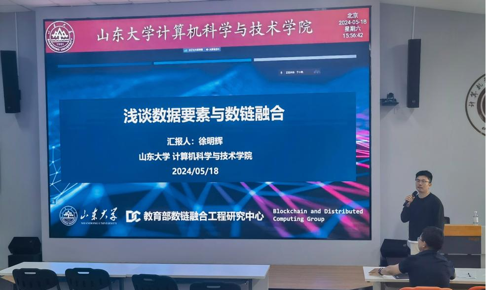 徐明辉副教授作题为“浅谈数据要素与数链融合”的报告,解析了数据要素与数字经济的紧密联系,以数据入表、数据交易等核心理论为切入点详细讲解了区块链技术在构建可信数据空间、实现数链融合目标等方面的重要作用。