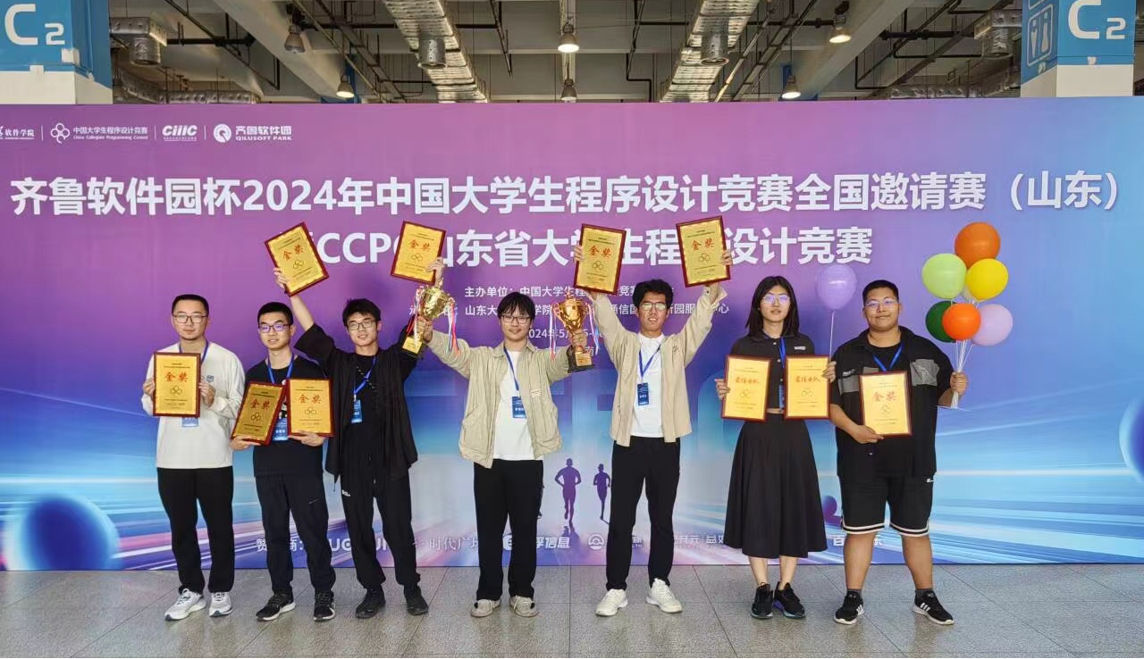 本次比赛为线下赛,参赛选手需在五个小时内完成十三道题目。我院选手在比赛中展示出扎实的知识基础、熟练的编码能力、默契的团队配合以及灵活的思维能力。由2023级本科生李玉庭、杨昀淇和2022级本科生孔轲祎组成的“拂晓前线”队,在比赛中表现出色,以第一名的成绩夺得省赛冠军,捧起冠军奖杯!这是bv1946伟德官网首次获得CCPC山东省赛冠军。此外,由2023级本科生詹靖杰、宿子腾和董家豪组成的“电话微波炉”队,由2021级本科生黄垚挺、李梓阳和2022级本科生于斐组成的“老登滑冰场”队,以及由2022级本科生王艺臻、唐复之等人组成的“三条线”队,获得邀请赛及省赛金奖。由2023级本科生邓璐、郭明珠和李一波组成的“人有三名,代码有三行”队,获得邀请赛和省赛最佳女队奖。