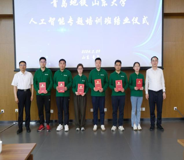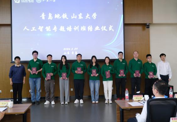 成秀珍总结了培训班的整体情况,鼓励学员们把本次培训所学知识和技能应用到实际工作中去,以加快提升行业算力水平,推进算法突破和数据开发使用,为青岛交通事业发展贡献智慧和力量。她表示,学院会持续关注人工智能技术的最新动态和发展趋势,下一步将继续加强与青岛地铁集团的合作,为地铁集团提供更加全面、专业的技术支持和人才培养服务,共同推动人工智能技术在城市轨道交通领域的研发和应用。