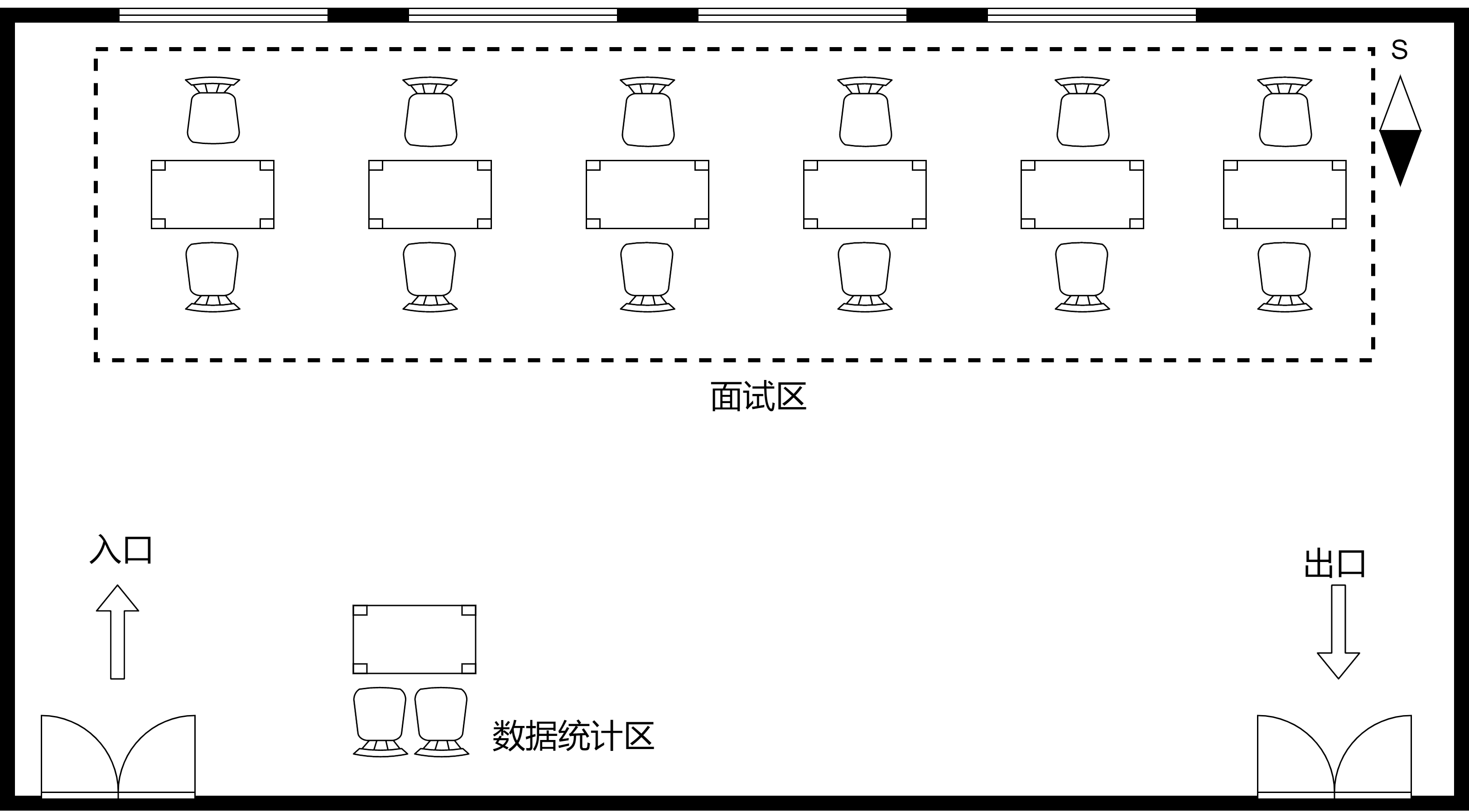 1.主考场设置6个面试席位,考生进入考场后,分别与6个席位的专家进行一对一面试,面试结束后自行起身并寻找有空位的面试席位就坐,每个席位面试时间为10分钟左右。