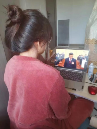 2021级本科生崔慕云于新疆家中观看直播